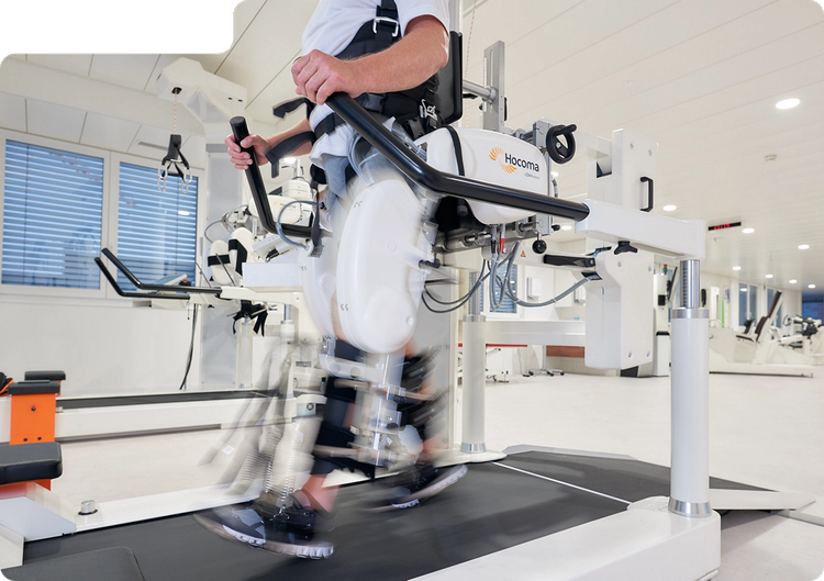 • العلاج الروبوتي للتدريب على المشي وإعادة تأهيل الذراعين وتنسيق الحركة
